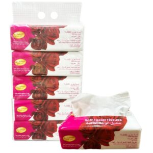 Ace Sabah Soft Facial Tissues deliver premium comfort and hygiene with 100% silky touch fibers. Each box contains 400 sterilized, pure white sheets in 2-ply thickness, offering ultra softness that keeps you comfortable for everyday use. Perfect for home, office, or travel, these tissues combine strength with gentle texture, making them suitable for sensitive skin. The pack includes 5 boxes with elegant rose design packaging, ensuring convenience and freshness.