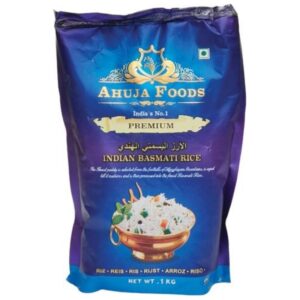 Ahuja Foods Premium Indian Basmati Rice is sourced from the foothills of the Himalayan Mountains, aged to maturity for optimal aroma and texture. This 1kg pack delivers long, slender grains that cook fluffy and separate ? perfect for biryani, pulao, and festive meals. Labeled ?India?s No.1,? it?s a trusted choice across UAE supermarkets.