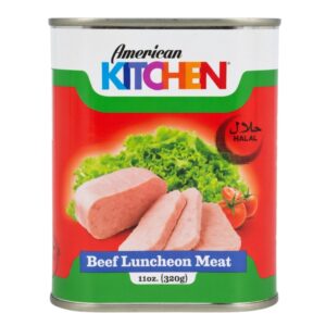 American Kitchen Beef Luncheon Meat offers a savory, ready-to-eat option made from quality beef. Certified Halal, it meets Islamic dietary standards, making it suitable for diverse households across the UAE and GCC. Packed in a 320g can, it’s versatile for sandwiches, fried rice, pasta, or quick meals. The packaging features bilingual labeling (English & Arabic) and appetizing visuals of sliced luncheon meat, reinforcing its appeal as a trusted pantry staple.
