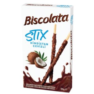 Biscolata STIX Coconut features crisp biscuit sticks dipped in smooth milk chocolate and sprinkled with coconut flavor. Packaged in a sleek box with bilingual Turkish-English labeling, it’s ideal for impulse buys, snack bundles, and gifting assortments. A popular choice across UAE and Southeast Asia for sweet cravings and on-the-go indulgence.