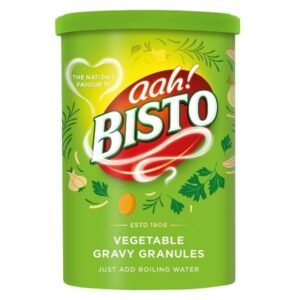 Bisto Vegetable Gravy Granules deliver rich, savory flavor with the convenience of instant preparation. Simply add boiling water to create smooth vegetable gravy, perfect for roasts, pies, and family meals. Established in 1908, Bisto is the UK’s favorite gravy brand, trusted for quality and taste. The 190g tub features vibrant vegetable imagery and resealable packaging for freshness.
