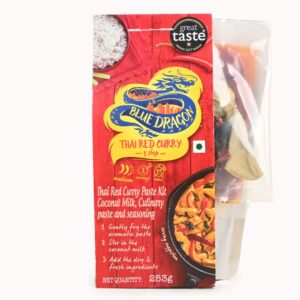 Blue Dragon Three Step Thai Red Curry makes it easy to cook authentic Thai red curry at home. This 253g kit includes red curry paste, coconut milk, and seasoning for a rich, aromatic, and perfectly balanced Thai curry.
