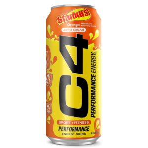 C4 Performance Energy Starburst Orange delivers explosive energy and focus with the bold taste of Starburst candy. Packed with 200mg caffeine, CarnoSyn? Beta-Alanine, and key vitamins like Niacin and B12, are zero-sugar 473ml can is designed for sport, fitness, and active lifestyles. With only 10 calories per serving, it supports endurance, metabolism, and mental sharpness without compromise. Perfect for pre-workout, training sessions, or busy days, C4 Performance Energy combines functional benefits with a fun, nostalgic flavor.