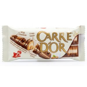 Carre D’Or Milk Chocolate Crispy Wafer with Hazelnut Filling offers a premium indulgence with its smooth milk chocolate coating, crunchy wafer layers, and rich hazelnut cream center. This 35g X2 pack contains two individually wrapped pieces, perfect for snacking, sharing, or enjoying as a light treat. The elegant packaging with gold and brown accents reflects its premium positioning, while the layered texture delivers a satisfying balance of creaminess and crunch.
