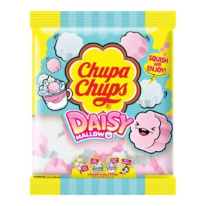 Chupa Chups Daisy Mallow brings playful sweetness with soft, squishy marshmallows shaped like flowers. This 150g bag features strawberry and vanilla flavors, perfect for parties, cake toppings, dessert bowls, or dipping in chocolate. The colorful packaging highlights its fun versatility, making it a delightful treat for both kids and adults. A trusted global brand, Chupa Chups delivers creativity and quality in every bite.