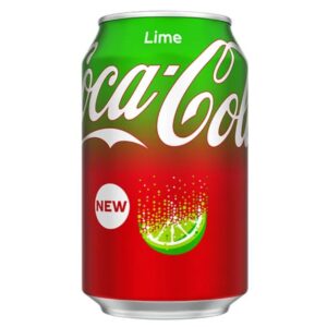Classic Coca-Cola infused with zesty lime ? 330ml can with vibrant green-red design.