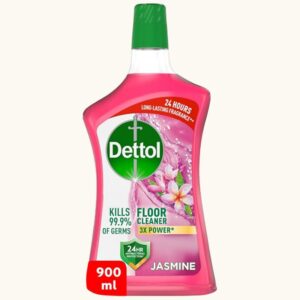 Dettol Antibacterial Power Floor Cleaner in Jasmine scent offers 3X cleaning power and 24-hour long-lasting fragrance. This 900ml bottle kills 99.9% of germs and leaves floors hygienically fresh. Featuring floral visuals, Arabic-English labeling, and a Super Special Offer badge, it’s ideal for home care bundles, impulse merchandising, and seasonal hygiene campaigns.