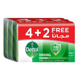 Dettol Original Antibacterial Bar Soap offers trusted germ protection with its clinically proven formula. Each 120g bar is designed to cleanse deeply while being gentle on skin. This pack of 6 is ideal for families or bulk buyers seeking reliable hygiene. Dermatologically tested and suitable for daily use.