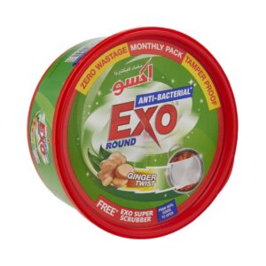 Exo Round Dishwashing Bar Ginger Twist delivers powerful grease-cutting action with zero wastage and anti-bacterial protection. Infused with ginger freshness, this 500g round bar ensures sparkling clean utensils while leaving a hygienic finish. Packaged in a tamper-proof container, it is designed for convenience and long-lasting use. Trusted by households for its efficiency and value, Exo combines tough cleaning with a refreshing twist.