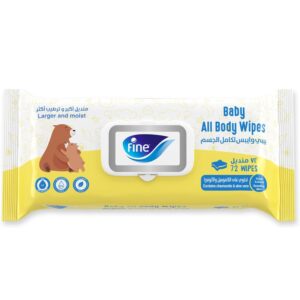 Fine Baby All Body Wipes are specially designed for delicate baby skin, offering gentle cleansing from head to toe. Dermatologically tested and enriched with skin-friendly ingredients, these wipes provide softness and freshness while maintaining natural moisture balance. The 72-sheet pack is convenient for everyday use at home or on the go, making it ideal for diaper changes, mealtime cleanups, and travel. Trusted by parents, Fine Baby ensures quality care with every wipe.