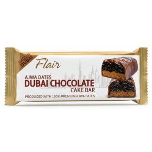 Flair Ajwa Dates Dubai Chocolate Cake Bar is a luxurious fusion of rich chocolate and premium Ajwa dates. Made in Dubai, this specialty snack highlights regional craftsmanship with a modern twist. Each bar is coated in smooth chocolate and filled with naturally sweet Ajwa dates, offering a wholesome indulgence with authentic Middle Eastern flavor. Perfect for gifting, sharing, or enjoying as a personal treat, it delivers both nutrition and decadence in every bite.