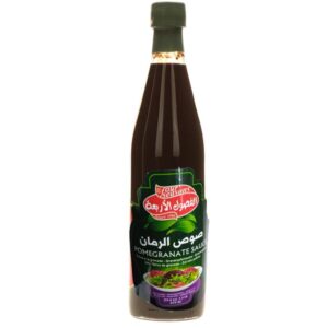 Four Seasons Pomegranate Sauce is a versatile, tangy dressing made from concentrated pomegranate juice. Packed in a 675g bottle with multilingual labeling (English, Arabic, French, Spanish, Greek, German), it features vibrant visuals and a ?Since 1980? heritage badge. Ideal for salads, grilled meats, and Middle Eastern recipes.