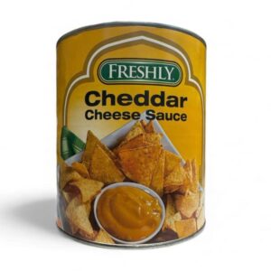 Freshly Cheddar Cheese Sauce delivers smooth, creamy flavor in a large-format 3kg tin. Perfect for nachos, burgers, pasta, and catering use. The vibrant yellow packaging features bilingual labeling and tortilla chip visuals, making it ideal for bulk pantry stocking, food service kits, or impulse display in wholesale aisles.
