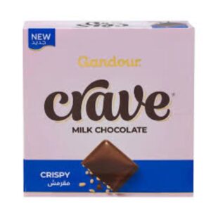 Gandour Crave Crispy Milk Chocolate Bars combine smooth milk chocolate with crispy bits for a satisfying crunch. Each 28g bar is individually wrapped, making this 12-pack perfect for lunchboxes, pantry stocking, or impulse snacking. With bold pink-and-blue packaging and bilingual labeling, it?s a shelf-friendly treat that blends creamy texture with crispy indulgence.