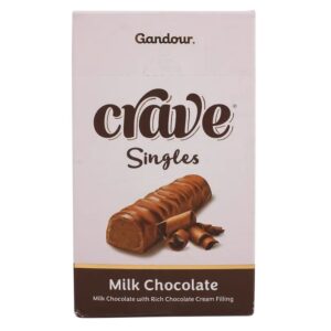 Gandour Crave Singles Milk Chocolate Bars feature smooth milk chocolate filled with rich chocolate cream. Each 29g bar is individually wrapped, making this 12-pack perfect for lunchboxes, pantry stocking, or impulse snacking. With bold packaging and bilingual labeling, it?s a shelf-friendly treat that blends creamy texture with indulgent flavor.