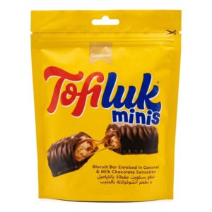 Mini biscuit bars with caramel & milk chocolate.