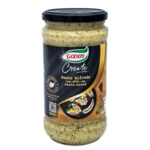 Goody Create Pesto Alfredo Pasta Sauce blends the richness of Alfredo with the herbal freshness of pesto. Made with real cream and no preservatives, this 411g jar is perfect for elevating pasta dishes, grilled chicken, or sauteed vegetables. Crafted for convenience and gourmet flavor, it’s a pantry essential for quick, satisfying meals.
