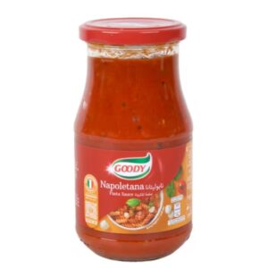 Goody Napoletana Pasta Sauce is crafted from ripe tomatoes, herbs, and spices to deliver authentic Italian flavor. Perfect for spaghetti, penne, lasagna, or as a base for homemade recipes, this sauce offers rich taste and convenience in a ready-to-use jar. The 420g glass jar features bilingual labeling (English & Arabic) and appetizing visuals, making it a trusted pantry staple for UAE and GCC households.