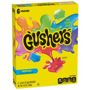 Packed in a convenient 136g pack, Gushers Tropical Fruit Snacks are easy to share or enjoy on the go. Whether you’re looking for a playful treat or a fruity snack with a twist, Gushers bring bold tropical taste and fun in every bite.