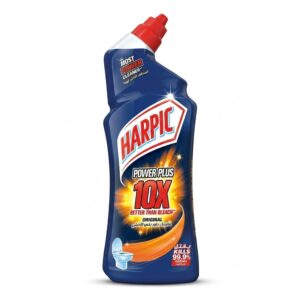 Harpic Power Plus 10X Toilet Cleaner delivers maximum cleaning strength for tough stains and germs. Its advanced formula is proven to be 10 times more effective than bleach, removing limescale, rust, and stubborn dirt while killing 99.9% of germs. The angled neck design ensures easy application under the rim for complete coverage. This larger 1000ml bottle offers extended use, making it ideal for households seeking long-lasting hygiene and sparkling clean toilets. Trusted Harpic quality guarantees a hygienic, fresh bathroom with every use.