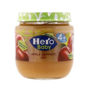 Hero Baby Apple Compote is a gentle fruit pure made from naturally sweet apples, suitable for babies aged 4 months and older. This 125g jar contains no added sugar and is part of Hero’s trusted Swiss baby food range. With bilingual Arabic-English labeling and a resealable lid, it’s ideal for weaning, gifting, and baby care bundles.