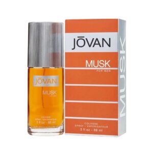 Classic musk cologne with bold masculine scent ? timeless fragrance in a sleek orange box.