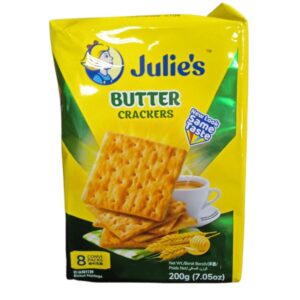 Julie’s Butter Crackers offer a golden, flaky crunch with a rich buttery taste. Packed in 8 handy portions, they’re perfect for snacking, pairing with tea or coffee, or enjoying with spreads. Made with quality ingredients and no artificial flavors, these Malaysian favorites deliver comfort and flavor in every bite.