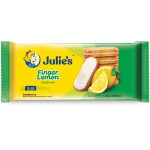 Julie’s Finger Lemon Sandwich Biscuits feature crunchy biscuit layers filled with smooth lemon cream. Packed in 5 convenient portions, they’re perfect for snacking on the go or sharing. With a refreshing citrus twist and creamy texture, these Malaysian favorites are ideal for tea time or lunchboxes.