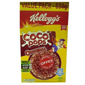 Kellogg’s Coco Pops Original are light, crispy rice cereals coated in rich chocolate flavor. They make breakfast fun and tasty, turning milk into a delicious chocolate drink while providing essential vitamins and minerals.
