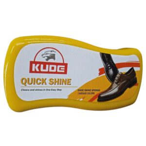 KUDE Quick Shine is a convenient shoe care sponge that cleans and polishes in seconds. Designed for use on black, brown, and neutral leather shoes, it delivers a quick, glossy finish without mess. Packaged in a compact yellow case with bilingual labeling and a bold red KUDE logo, it?s ideal for travel kits, office drawers, or impulse checkout displays.