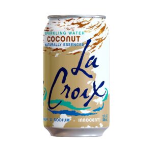 LaCroix Coconut Sparkling Water is a refreshing, calorie-free beverage crafted with natural coconut essence. Packaged in a 355ml can, it contains no sugar, sweeteners, or sodium, making it a guilt-free option. free choice for hydration. Known for its distinctive tropical flavor and iconic artistic packaging, LaCroix is a favorite among health-conscious consumers seeking a sparkling alternative to sodas.