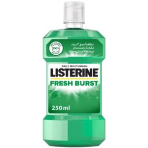 Listerine Fresh Burst Daily Mouthwash, 250ml delivers a powerful clean with a refreshing minty burst. It helps fight bad breath, reduce plaque, and maintain healthy gums, leaving your mouth feeling fresh and clean every day.
