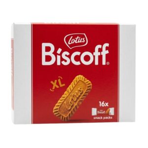 Lotus Biscoff XL Biscuits deliver the iconic caramelized flavor in an extra-large format. This 400g box contains 16 individually wrapped 25g snack packs, perfect for sharing, lunchboxes, or enjoying with coffee and tea. Known worldwide for their distinctive taste and embossed Lotus branding, Biscoff biscuits are a premium indulgence that combines convenience with heritage.