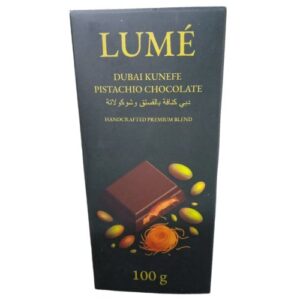 LUMÉ Dubai Kunefe Pistachio Chocolate blends the creamy richness of premium chocolate with the authentic flavors of kunefe and pistachio. Handcrafted for indulgence, this fusion treat offers a unique taste experience inspired by Middle Eastern desserts. Perfect for gifting or savoring as a luxurious snack.