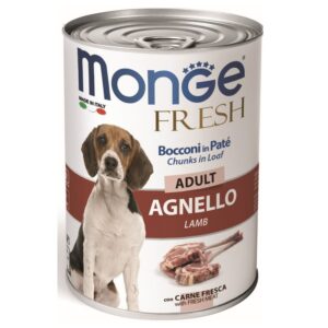 Monge Fresh Adult Dog Food delivers authentic Italian quality with a recipe made from fresh lamb. This 400g can features chunks in a loaf texture, combining tender pieces with p?t? for a balanced and tasty meal. Specially formulated for adult dogs, it provides protein, vitamins, and minerals to support daily nutrition. Made in Italy, Monge Fresh ensures wholesome ingredients and premium flavor in every serving.