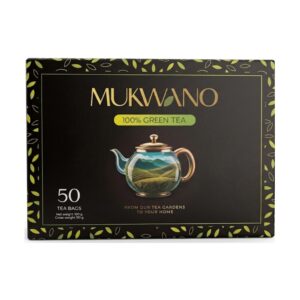 Mukwano 100% Green Tea is crafted from carefully selected tea leaves, offering a smooth, refreshing taste with natural antioxidants. Packed in a 100g box containing 50 tea bags, it’s perfect for daily wellness routines, whether enjoyed hot or iced. The elegant packaging highlights freshness and purity, with the tagline “From our tea gardens to your home,” appealing to UAE and GCC households seeking healthier beverage options.