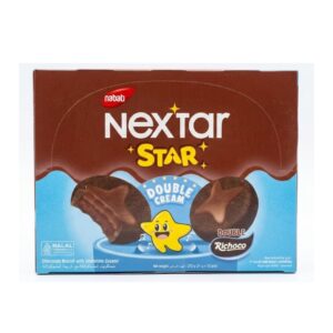 Nabati Nextar Star Double Cream Double Richoco biscuits are indulgent, star-shaped treats filled with a rich double chocolate cream center. Certified halal and made with quality ingredients, these biscuits are perfect for sharing, gifting, or enjoying as a sweet snack. Each pack contains 12 individually wrapped portions for freshness and convenience.