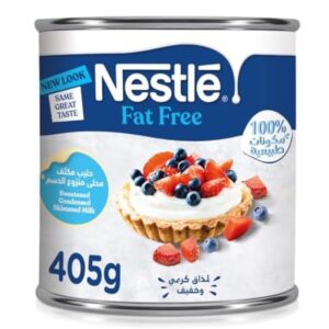 Nestle Fat Free Sweetened Condensed Milk delivers the same creamy sweetness as the classic version but with reduced fat content. Ideal for preparing desserts, beverages, and baked goods, it offers a healthier alternative without compromising taste. Each 405g tin is convenient for home use, professional kitchens, or cafes.