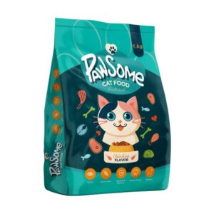 Pawsome Natural Chicken Flavor Cat Food is a complete dry formula designed to support feline health across all life stages. Made with selected ingredients including chicken meal, fish meal, and beet pulp, it delivers 26% protein and 9% fat for balanced nutrition. Enriched with taurine for heart and eye health, natural fiber for digestion, and Omega 6 for a shiny coat. Crunchy texture promotes dental wellness. Packaged in a resealable 1kg pouch with playful visuals and clear nutrient breakdown.
