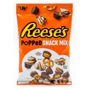 Reese’s Popped Snack Mix is the perfect balance of sweet and salty, featuring Reese’s Peanut Butter Cup Minis, crunchy pretzels, and chocolate-drizzled popcorn. This 113g bag offers a smaller, convenient pack size ideal for on-the-go snacking, lunchboxes, or portion-controlled indulgence. With bold peanut butter flavor and satisfying crunch, it’s a must-have treat for Reese’s fans.