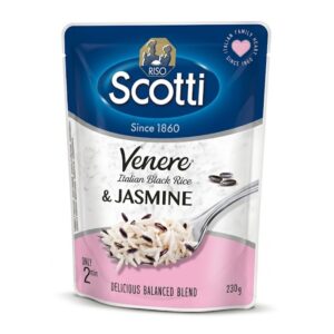 Riso Scotti Venere Italian Black Rice & Jasmine offers a delicious, balanced blend of aromatic jasmine rice and premium Italian black rice. Ready in just 2 minutes, this 230g pack combines convenience with authentic flavor, making it ideal for quick meals, side dishes, or healthy bowls. Rich in taste and visually appealing, it’s crafted with Riso Scotti’s heritage of quality since 1860. Perfect for modern kitchens seeking nutritious, gourmet rice options.