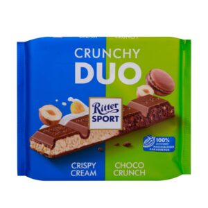 Discover the ultimate chocolate experience with Ritter Sport Crunchy Duo Crispy Cream & Choco Crunch, 218g, a premium German chocolate creation that delivers two distinct flavor adventures in one iconic square bar. This innovative dual-texture chocolate combines smooth hazelnut cream with crunchy cornflakes on one side, while the other half features rich cocoa cream enhanced with macaron pieces and roasted hazelnuts. Perfect for chocolate enthusiasts who crave variety and texture in every bite.