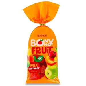 Roshen Bony Fruit Mix Summer Candy is a vibrant assortment of chewy fruit-flavored sweets made with 25% real juice. Featuring flavors like cherry, green apple, orange, and peach, each piece bursts with juicy sweetness and a soft texture. The 200g pouch is perfect for sharing, gifting, or adding a fruity twist to your snack stash.