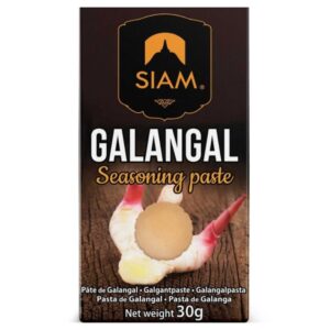 SIAM Galangal Seasoning Paste delivers the citrusy, peppery warmth of fresh galangal root in a convenient 30g pack. Made in Thailand and certified authentic, it’s ideal for Tom Yum soup, Thai curries, and Southeast Asian marinades. With multilingual packaging and a visible paste window, it’s a premium choice for home cooks and chefs alike.