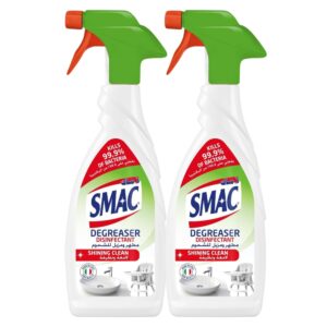 Smac Detergent Disinfectant delivers strong cleaning performance with effective germ-killing action, making it ideal for kitchens, bathrooms, floors, and high-touch surfaces. This value twin pack includes two 650ml bottles, giving you long-lasting protection and freshness for everyday home hygiene. Designed to remove dirt, grease, and stains while disinfecting in one step, Smac helps keep your home clean, safe, and pleasantly scented.