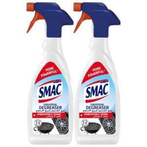 Smac Universal Degreaser Bathroom Cleaner Spray is designed to remove tough bathroom dirt with ease. Its powerful formula cuts through grease, soap scum, limescale, and residue on tiles, sinks, taps, bathtubs, and shower surfaces. This value twin pack includes two 650ml bottles, giving you long-lasting cleaning performance for daily maintenance or deep cleaning. Leaves your bathroom fresh, shiny, and hygienically clean.