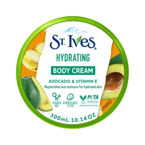 St. Ives Hydrating Body Cream with Avocado and Vitamin E is a luxurious and nourishing body cream that is formulated with avocado and vitamin E to provide deep hydration and moisture to the skin. The rich and creamy texture absorbs quickly into the skin, leaving it feeling soft, smooth, and replenished.