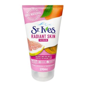 St. Ives Radiant Skin Scrub combines pink lemon and mandarin extracts with 100% natural exfoliants to gently polish away dullness and purify skin. Dermatologist-tested and vegan, this oil-free formula is ideal for weekly glow routines and skincare bundles. Packaged in a vibrant tube with citrus visuals, it’s a shelf standout.