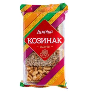 Timosha Kozinak Assorted is a protein-rich sweet bar made from a mix of peanuts, sunflower seeds, sesame, and flax bound in caramelized syrup. This 225g pack features vibrant diagonal stripe visuals and bilingual labeling, emphasizing its 100% natural, GMO-free formulation. Ideal for health-conscious snack bundles, cultural novelty kits, or impulse checkout displays.