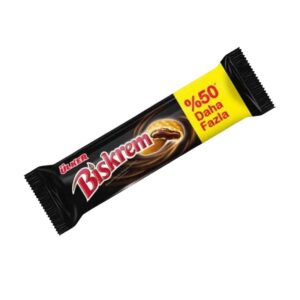 Ulker Biskrem is a beloved Turkish cookie featuring a soft baked shell and indulgent chocolate cream center. This promo pack offers 50% more cookies, making it ideal for family sharing, snack bundles, and impulse buys. Packaged in bold black-red branding with yellow promo highlights.